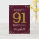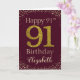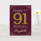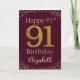 Happy Birthday with simulated golden glitter number 91 set on a solid colour and framed by faux diamonds and rhinestones. Happy birthday and recipients name in off-white font. Personalise with name or message.
