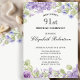 This elegant ivory, lavender purple, and sage green floral border 91st birthday invitation is perfect for an elegant birthday party. This design features a watercolor flowers frame, and is a nice feminine choice for a special event to celebrate a milestone birthday.
