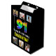 This eye-catching and fun birthday-themed gift bag design features a large number “91“ having a colourful rainbow spectrum inspired gradient pattern, plus the message “Happy 91st Birthday,“ and a customisable recipient name. Above and below the message are some photos that can be personalised, perhaps with photos of the recipient, the recipient’s family and friends, and/or the sender(s) of the gift. A birthday themed gift bag like this might be a fun way to wrap a gift being given to somebody who is celebrating their ninety-first birthday. (Photography © Storytree Studios, Stanford, CA.) [~Z0000669]