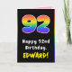 92nd Birthday: Colourful Rainbow # 92, Custom Name Card