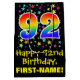 This vibrant, exciting, and colourful birthday gift bag design features a large number "92" with a rainbow spectrum gradient style pattern, along with the message "Happy 92nd Birthday,", and an editable recipient name. It also has a colourful background pattern featuring star shapes of various sizes. A birthday themed gift bag like this might be a fun way to wrap a gift or present being given to somebody who is celebrating their 92nd birthday. [~Z0000510]