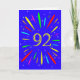 An explosive 92nd birthday card! What a wonderful way to send birthday greetings. The number 92 in bright yellow with an explosion of bright colours and stars.