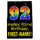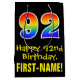 This colourful, exciting, and fun birthday-themed gift bag design features a large number "92" with a rainbow spectrum gradient inspired pattern, along with the message "Happy 92nd Birthday,", and a custom recipient name. It also has a black-coloured background. A birthday themed gift bag like this might be a fun way to wrap a gift or present being given to somebody who is celebrating their 92nd birthday. [~Z0000512]