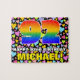 This bold and colourful birthday themed jigsaw puzzle design features a large number “92” with a multicolored rainbow spectrum inspired gradient pattern, along with the message “HAPPY 92nd BIRTHDAY,”, and a personalised recipient name. The background has an upbeat pattern of loving hearts with various sizes and colours. An exciting, customisable birthday puzzle like this might be given in celebration of somebody’s ninety-second birthday. [~Z0000611]