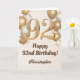 92nd Birthday Gold Balloons and Confetti Birthday Card