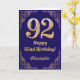 92nd Birthday Navy Blue and Gold Glitter Frame Card