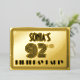 The front of this elegant and 1920s/1930s style inspired ninety-second birthday party foil invitation card design features a customisable name, a fancy art deco look inspired number “92nd”, the message “BIRTHDAY PARTY”, and a multi-line border. The back features personalised details about the event, such as the date, time, location/venue, and any other information that may be important. Stylish, luxurious, personalised invitations like these might be used to invite guests to a birthday gathering/party being held to celebrate somebody’s 92nd birthday. [~Z0000594]