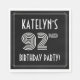 This stylish and 1920s-1930s style inspired ninety-second birthday party/celebration paper napkin design features a personalised name, a fancy art deco style inspired number “92nd”, the message “BIRTHDAY PARTY!”, and a multi-line border. The background is coloured black by default, but it can be customised to a different colour, if desired. Paper napkins like these might be used at a birthday party held in celebration of somebody’s ninety second birthday. [~Z0000616]