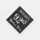 This opulent and elaborate birthday-themed paper napkin design features a customisable name and the message “92nd Birthday Party”. The large number “92nd” and the words “Birthday Party” are in fancy script-style text, and the background is coloured black by default (although it can be customised). Ornate, elegant paper napkins like this might be used at a birthday celebration/party being held to honour somebody’s ninety second birthday. [~Z0000563]