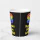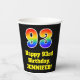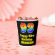 This fun and colourful birthday paper cup design features a large number “93” having a rainbow spectrum gradient inspired pattern. It also features the message “Happy 93rd Birthday,”, and an editable name. The background is coloured black. Vibrant, colourful paper cups like this might be fun to have at a birthday celebration being held to honour somebody’s 93rd birthday. [~Z0000537]