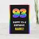 93rd Birthday: Colourful Rainbow # 93, Custom Name Card