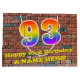 This vibrant and colourful birthday-themed gift bag design, inspired by graffiti and urban art, features a large number "93" having a rainbow spectrum gradient inspired pattern. It also features the message "Happy 93rd Birthday,", and an editable name. It also has a brick wall inspired pattern background. A fun giftbag like this might be used when giving a gift or present in honour of somebody’s 93rd birthday. [~Z0000522]
