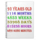 93rd birthday counting down the years, days, months, hours, and minutes. A birthday present to give pause for thought! Leap years have been taken into account!
