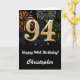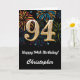 94th Birthday Rainbow Fireworks Black and Gold Card