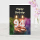 A birthday cup-cake with candles. The candles are made up of the number 94, for a 94th birthday. A birthday card suitable for everybody.