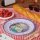 95 Your Photo Random Number Pattern Purple/White Paper Plate