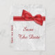 Womens' elegant 95th Birthday Party save the date postcards. Woman's ninety fifth birthday party save the date cards. Beautiful white damask pattern background of flourishes and swirls with a pretty, stylish romantic red bow and ribbon image. These glamourous, chic, classy save the date postcards are beautifully sophisticated and are decorated / printed on both sides. PLEASE NOTE: All products on Zazzle have flat printed images. Bow and ribbon images purchased from digital-designs-by-elena. If you need any assistance customising your product please contact me through my store and I will be happy to help. I also have other matching products in my store.