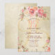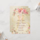 Invite your guests in style to a 95th birthday party with this vintage floral flat card invitation. This elegant design template features watercolor roses in shades of pink and peach with green leaves on a gold shimmering background. In the centre is a large number "95th" in modern pink typography. Below is your party details to personalise. The back of the card is a matching gold shimmer pattern. Designed by artist ©Susan Coffey.