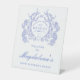 95th Birthday French Blue Floral Crest Welcome Pedestal Sign