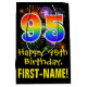 This exciting, colourful, and fun birthday gift bag design features a large number "95" with a rainbow spectrum gradient style pattern, along with the message "Happy 95th Birthday,", and a customisable recipient name. It also has a colourful background pattern inspired by bursting celebratory fireworks. A birthday themed gift bag like this might be used when giving a gift or present in celebration of somebody’s 95th birthday. [~Z0000509]
