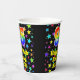 This joyful and exciting birthday paper cup design features a large number “95” having a rainbow spectrum gradient inspired pattern. It also features the message “Happy 95th Birthday,”, and a customisable name. The background features a multicolored star field inspired pattern. Colourful, vibrant paper cups like this might be fun to have at a birthday party being held to celebrate somebody’s ninety fifth birthday. [~Z0000540]