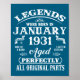 95th Birthday Gift Legend Born In January 1931 95 Poster