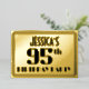 The front of this stylish ninety-fifth birthday celebration foil invitation card design features an editable name, an art deco style inspired number “95th”, the message “BIRTHDAY PARTY”, and a border pattern consisting of lines. The back features personalized details about the event, such as the venue/location, date, time, and any other information that may be relevant. Elegant, stylish, personalized invitations like these might be used to invite attendees to a birthday party/gathering being held in celebration of somebody’s 95th birthday. [~Z0000606]