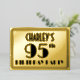 The front of this 1920s/1930s style inspired and elegant ninety-fifth birthday party/celebration foil invitation features a personalised name, a large art deco style inspired number “95th”, the message “BIRTHDAY PARTY”, and a border pattern consisting of lines. The back features personalised details about the event, such as the date, time, location/venue, and any other information that may be important. Stylish, luxurious, personalised invitations like these might be used to invite guests to a birthday gathering being held to honour somebody’s 95th birthday. [~Z0000592]
