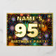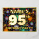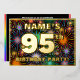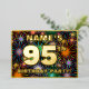 The front of this bold and eye-catching ninety-fifth birthday celebration/party foil invitation card design features a personalised name, a large number “95th”, the message “BIRTHDAY PARTY!”, and a border. The background of the front features an upbeat, multicolored pattern that resembles bursting celebratory fireworks. The back features personalised details about the event, such as the date, time, place/venue, and any other useful information. Editable invitations like these might be a fun way to invite guests/attendees to a birthday gathering being held to celebrate somebody’s 95th birthday. [~Z0000602]