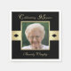 These pretty paper cocktail napkins are the perfect addition to a birthday party for your favourite 95 year old. Your loved one is the focal point in a golden frame with golden accents on a black background. The words "Celebrating 95 years" appear above the photo and the napkins are personalised with the birthday celebrant's name below the photo. These disposable napkins add a lovely touch to a 95th celebration. Copyright henishouseofpaper