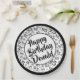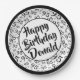 This over-the-hill design has a black and white random number pattern with a black milestone number 95 repeated in varied sizes and angles. There is a white circle in the centre for your text and black-and-white rings around the rim.