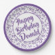 95th Party Random Number Pattern Purple/White Paper Plate