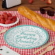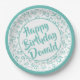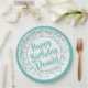 This over-the-hill design has a teal and white random number pattern with a teal milestone number 95 repeated in varied sizes and angles. There is a white circle in the centre for your text and teal-and-white rings around the rim.