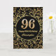 96th Birthday Black and Gold Floral Pattern Card