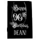 This ornate and fancy birthday themed giftbag design features the message “Happy 96th Birthday,” in opulent script style text, on a black coloured background. It also has a custom recipient name. An elegant gift bag like this might be a respectable way of wrapping a birthday present or gift being given to somebody who is celebrating their 96th birthday. [~Z0000557]