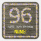 96th Birthday: Floral Number, Faux Wood Look, Name Square Sticker