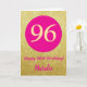 96th Happy Birthday Hot Pink and Gold Glitter Card
