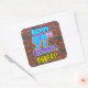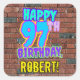 This fun birthday-themed square sticker design features the message “HAPPY 97TH BIRTHDAY,” having a colourful, vibrant, urban street art and graffiti inspired appearance, along with a personalised recipient name. The background features a pattern inspired by the look of a brick wall. Vibrant, fun, personalised stickers like this might be given as a birthday gift, or used while wrapping gifts, or perhaps used as birthday party decorations when celebrating somebody’s ninety seventh birthday. [~Z0000535]