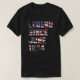 I give wanted to give this a 4 instead of a 5 because these Basic DARK T0shirts run unexpectedly SLIM or Narrow. Which is great if you do not have a potbelly, but I have a paunch. It isn't the shirt's fault that I've got a beer belly. The design and shirt itself is a quality cotton shirt. The color is more of a deep purple, but still a very pretty color. The Basic DARK T-shirts run a bit SLIMMER than the Basic Ts. The neck is a fraction narrower (or seems to be narrower) also. I'm a paunchy middle-aged woman and my neck is 12 inches (31cm) thick and the neckline fell about the same as in the photo of the man, and I had the desire to tug it a bit. So if you're a thick necked man or like loose shirts, be aware these are slimmer shirts. Once I get rid of my lockdown paunch it'll look great. The shirt washed well in cold water with no apparent bleeding. We don't have a dryer, so it hung dry. Did not shrink. Love the colors and the design. The design looks smaller on my shirt than it does on the model on-line. But still, it looks good on the shirt. The printing looks as it does on the model, just the size seems fractionally smaller. Washed garment in cold water, hung dry and design appeared unaffected.