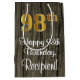 This luxurious, elegant, and sophisticated birthday gift bag design features a large ordinal number “98th” having a faux/imitation gold-inspired appearance, along with the birthday greeting message “Happy 98th Birthday,” and a customisable recipient name in a script-style font. It also has a faux wood-inspired background pattern. A birthday themed gift-bag like this might be a fun way to wrap a gift or present being given to somebody who is celebrating their ninety eighth birthday. [~Z0000520]