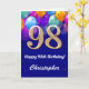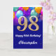 98th Birthday Navy Blue and Gold Colourful Balloon Card
