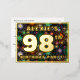 The front of this vibrant and joyful ninety-eighth birthday celebration foil invitation postcard design features a custom name, a large number “98th”, the message “BIRTHDAY PARTY!”, and a border. The background of the front features a fun, multicolored pattern that resembles bursting celebratory fireworks. The back features personalised details about the event, such as the date, time, venue, and any other information that may be useful. Personalised invitations like these might be a fun way to let guests know about a birthday gathering/party being held to celebrate somebody’s 98th birthday. [~Z0000609]