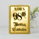 The front of this fancy and elegant ninety-eighth birthday celebration/party foil invitation card design features the message “98th Birthday Celebration” in luxurious script-style text. It also has a customisable name. The back features personalised details about the event, such as the date, time, venue/location, and any other important information. Elaborate, opulent, customised invitations like these might be used to invite guests to a birthday celebration being held in celebration of somebody’s 98th birthday. [~Z0000596]