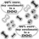 NewParkLane - Great Contour Stickers, with funny, sarcastic quote: '99% sure my soulmate is a dog' in fun black typography, and different black and white dog bones and dog paws. A fun humourous gift for dog lovers!