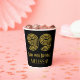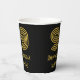 This 1920s-1930s style inspired and vintage look birthday themed paper cup design features a large art deco inspired style number “99”, plus the birthday greeting message “Happy 99th Birthday,” and an editable name. The background is colored black. 1920s-1930s style inspired birthday themed paper cups like this might be used at a party celebrating somebody’s ninety-ninth birthday. [~Z0000546]