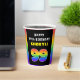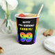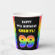 This joyful and fun birthday themed paper cup design features the number “99“ with a vibrant multicolored rainbow spectrum inspired gradient pattern, along with the message “HAPPY 99th BIRTHDAY,”, and a personalised recipient name. Bold paper cups like this might be used when hosting a party for somebody in celebration of their ninety ninth birthday. [~Z0000639]