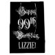 This fancy and lavish birthday-themed gift bag design features the message “Happy 99th Birthday,” in elegant script style text, on a black coloured background. It also has a personalised recipient name. A formal gift bag like this might be used when giving a gift or present in honour of somebody’s ninety ninth birthday. [~Z0000557]