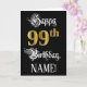 99th Birthday — Fancy Script; Faux Gold Look; Name Card
