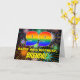 The front of this joyful and vibrant birthday themed greeting card design features a large number “99” with a multicolored rainbow spectrum inspired gradient pattern, along with the message “HAPPY 99th BIRTHDAY,”, and a custom recipient name. The background of the front features a bold, multicolored pattern inspired by bursting celebratory fireworks. The inside has a customisable birthday greeting message, or could perhaps be cleared and left blank if a message is to be written by hand instead. A cheerful, customisable birthday greeting card like this might be used to celebrate somebody’s ninety-ninth birthday. [~Z0000619]