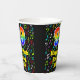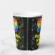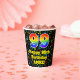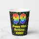 This cheerful and exciting music themed birthday paper cup design features a large number “99” with a rainbow spectrum gradient inspired pattern, along with the message “Happy 99th Birthday,”, and a customisable name. The background features a multicolored pattern having music notes and symbols of various colours and sizes. Colourful, vibrant paper cups like this might be fun to use at a birthday party/celebration being held to honour somebody’s ninety ninth birthday. [~Z0000541]